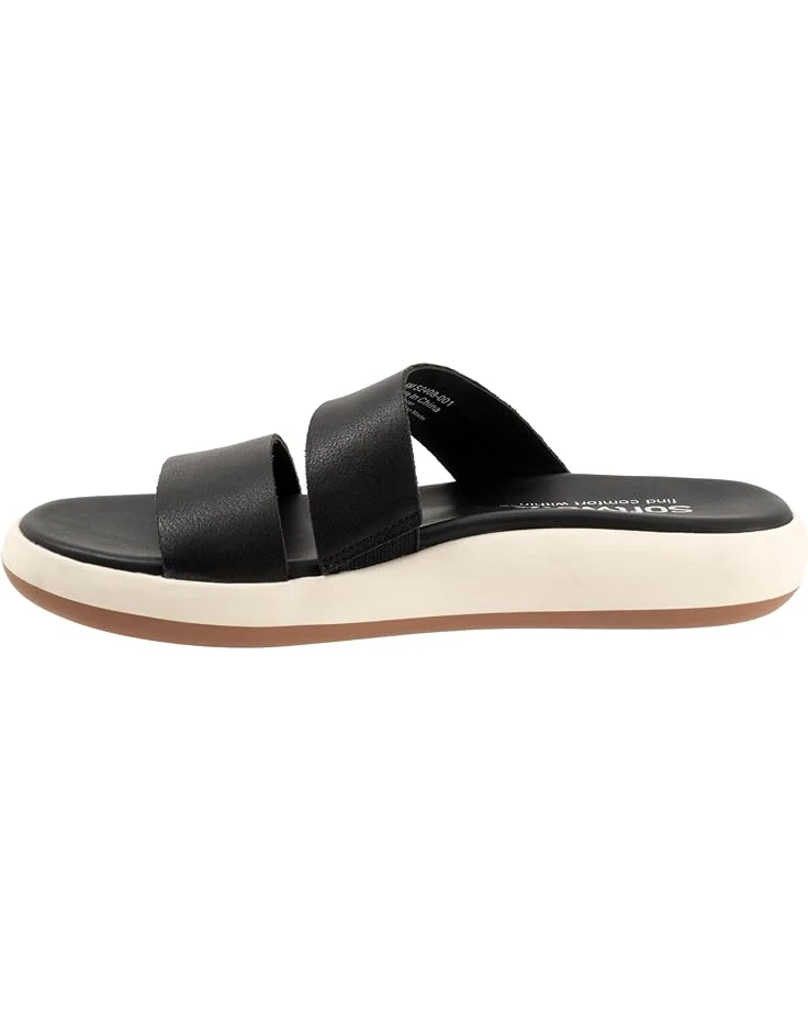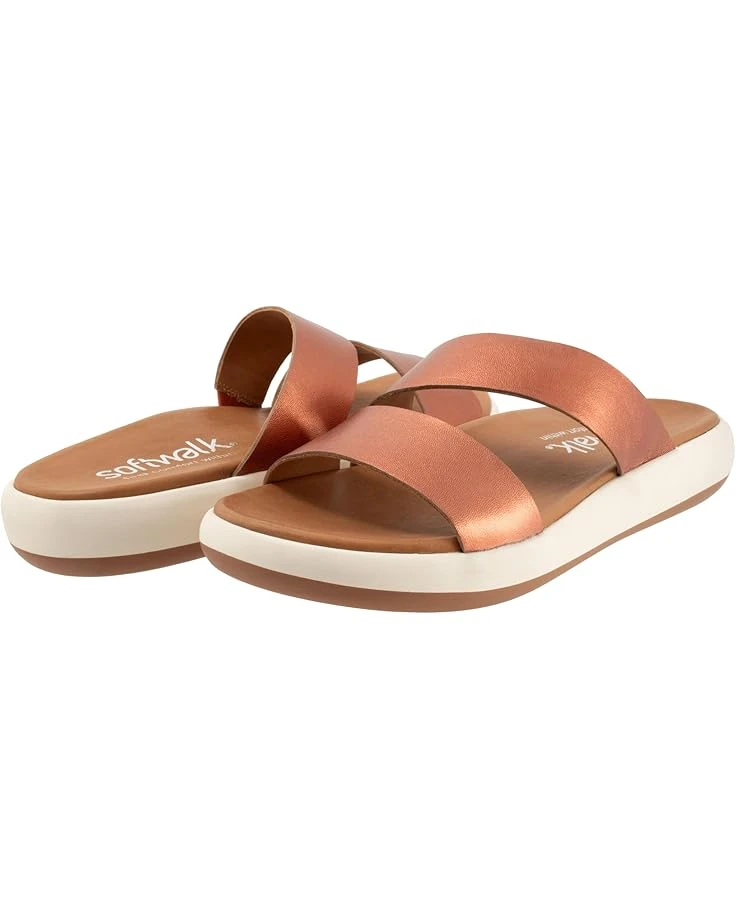 Relish moments of ease and joy outdoors wearing the SoftWalk® Jenna Flat Sandals. The slip-on footwear features two-band leather upper and soft cushioned foam footbed with arch support.